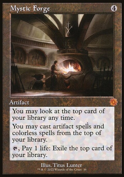 You may look at the top card of your library any time. You may cast artifact spells and colorless spells from the top of your library. {T}, Pay 1 life: Exile the top card of your library.