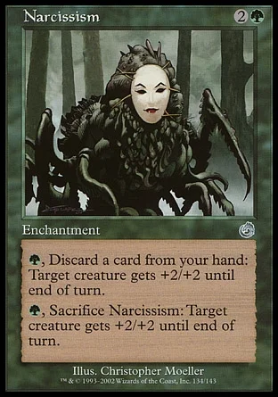G, Sacrifice Narcissism: Target creature gets +2/+2 until end of turn.