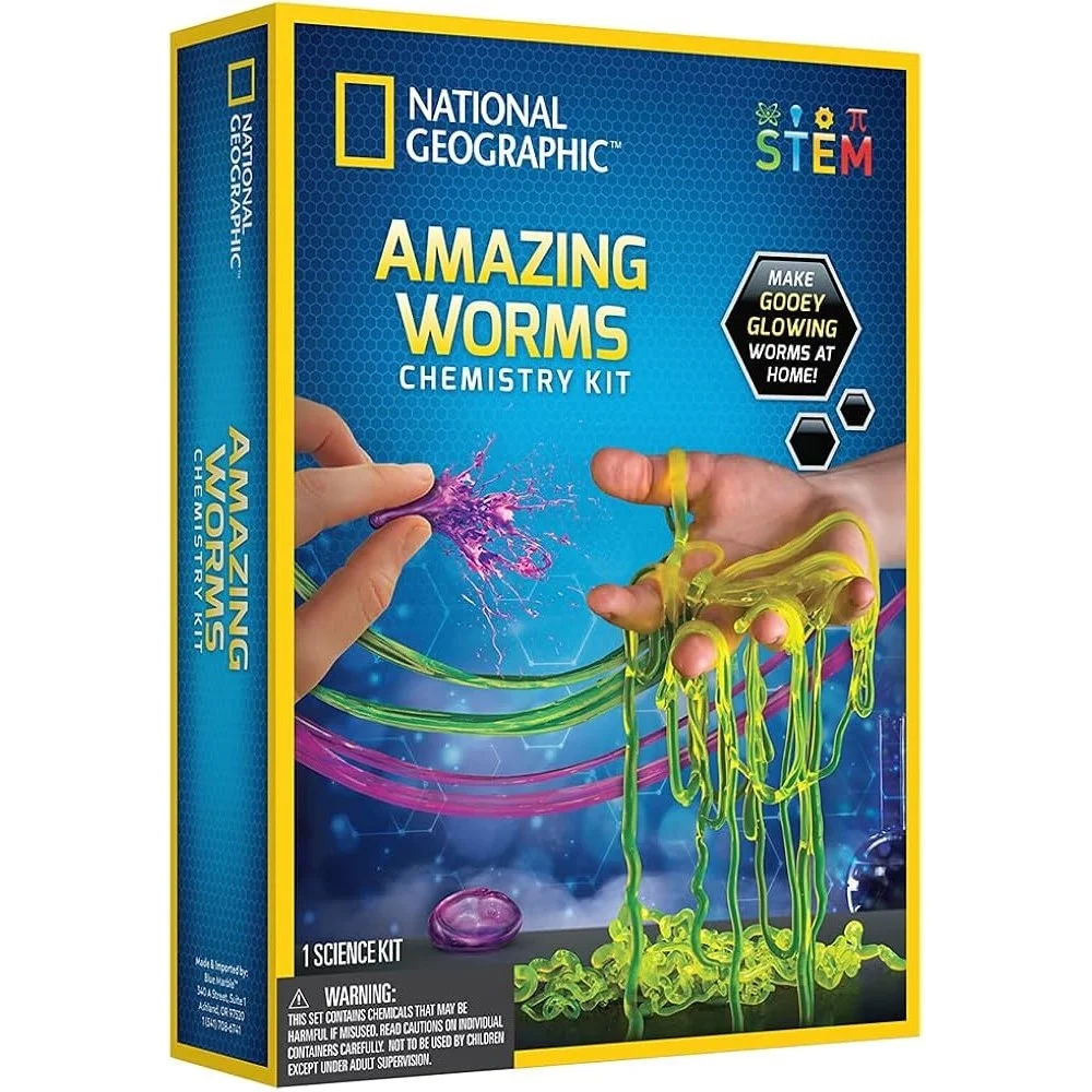 Give your kids a creepy, crawly chemistry kit they’ll love! The National Geographic Amazing Worms Chemistry Kit comes with everything your children need to conduct five unforgettable experiments. They’ll make glow-in-the-dark worms, colour-changing worms, worm eggs, and more! A detailed experiment guide takes you step-by-step through each experiment and includes insight into the polymer science and chemical reactions that make this kit so much fun! Age 8+