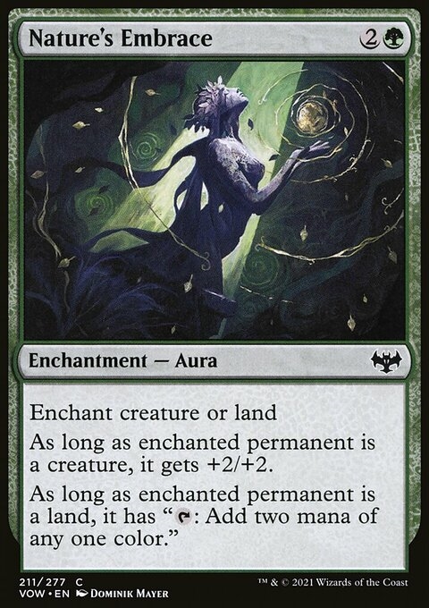 Enchant creature or land As long as enchanted permanent is a creature, it gets +2/+2. As long as enchanted permanent is a land, it has "{T}: Add two mana of any one color."