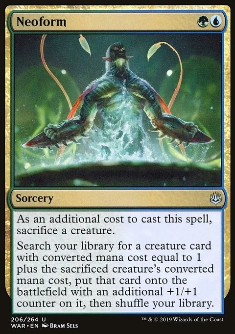 Search your library for a creature card with mana value equal to 1 plus the sacrificed creature's mana value, put that card onto the battlefield with an additional +1/+1 counter on it, then shuffle.