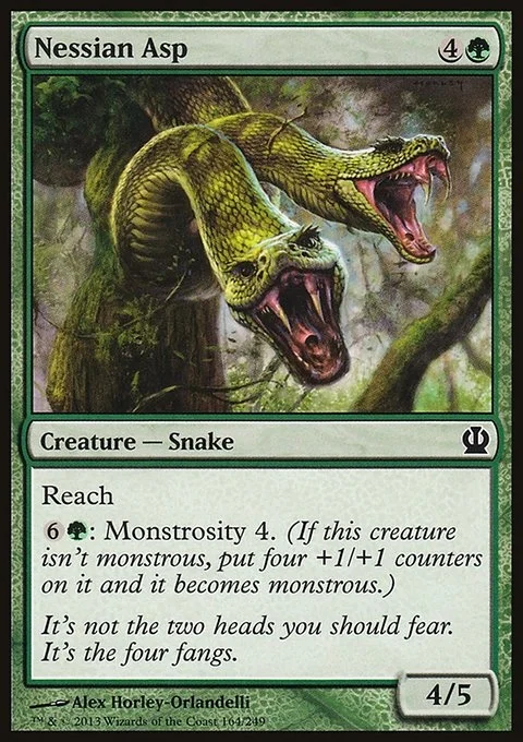 Reach {6}{G}: Monstrosity 4. (If this creature isn't monstrous, put four +1/+1 counters on it and it becomes monstrous.)