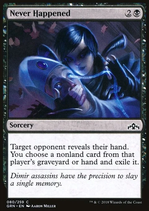 Target opponent reveals their hand. You choose a nonland card from that player's graveyard or hand and exile it.