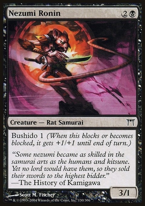 Bushido 1 (Whenever this creature blocks or becomes blocked, it gets +1/+1 until end of turn.)