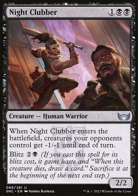 When Night Clubber enters the battlefield, creatures your opponents control get -1/-1 until end of turn.