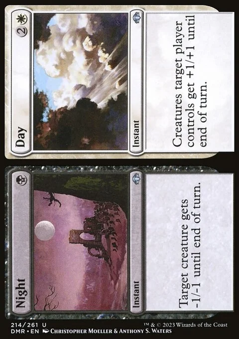 Night Target creature gets -1/-1 until end of turn. Day Creatures target player controls get +1/+1 until end of turn.