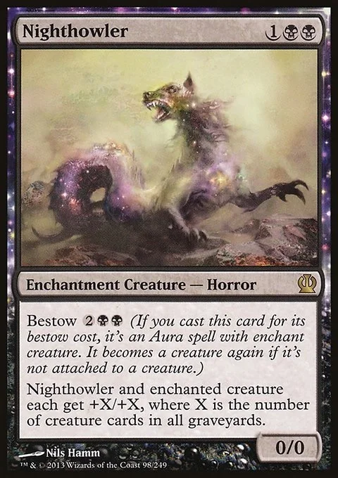 Nighthowler and enchanted creature each get +X/+X, where X is the number of creature cards in all graveyards.