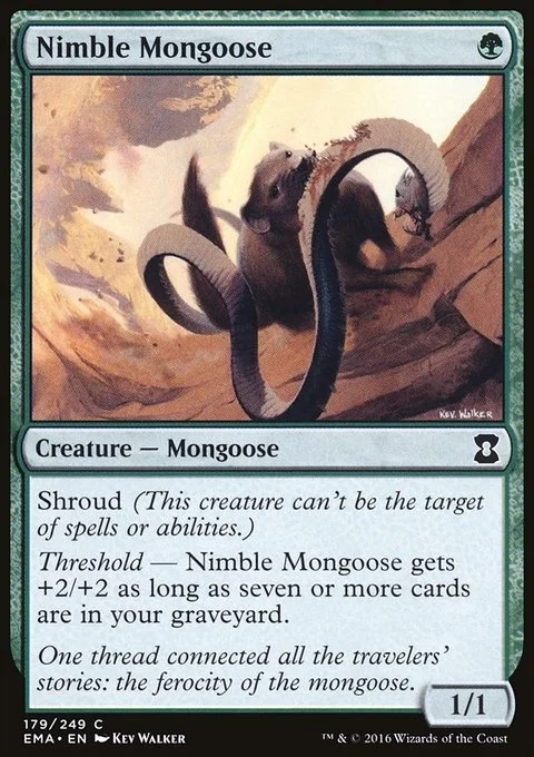 Shroud (This creature can't be the target of spells or abilities.) Threshold — This creature gets +2/+2 as long as seven or more cards are in your graveyard.