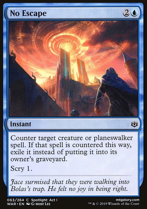 Counter target creature or planeswalker spell. If that spell is countered this way, exile it instead of putting it into its owner's graveyard. Scry 1.