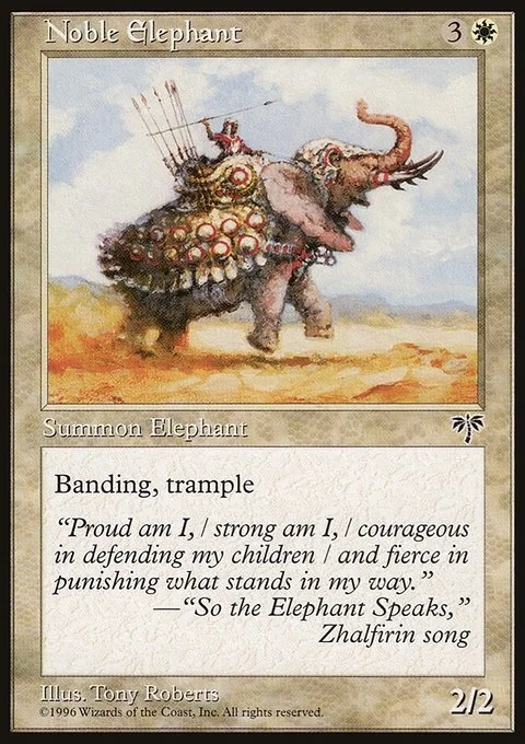 Trample; banding (Any creatures with banding, and up to one without, can attack in a band. Bands are blocked as a group. If any creatures with banding you control are blocking or being blocked by a creature, you divide that creature's combat damage, not its controller, among any of the creatures it's being blocked by or is blocking.)