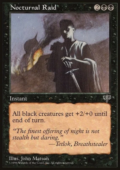 All black creatures get +2/+0 until end of turn.