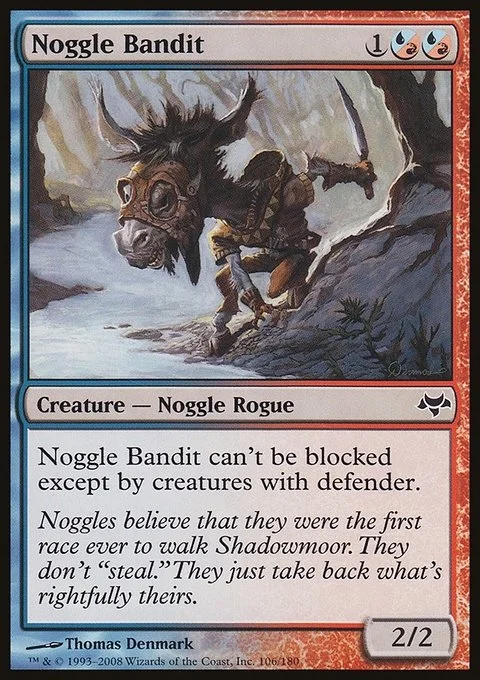 Noggle Bandit can't be blocked except by creatures with defender.