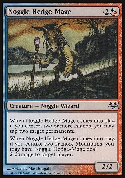 When Noggle Hedge-Mage enters the battlefield, if you control two or more Mountains, you may have Noggle Hedge-Mage deal 2 damage to target player or planeswalker.