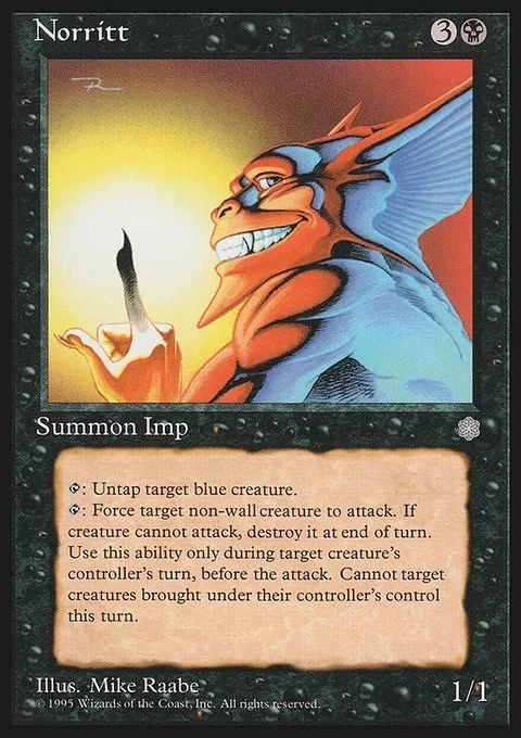 {T}: Untap target blue creature. {T}: Choose target non-Wall creature the active player has controlled continuously since the beginning of the turn. That creature attacks this turn if able. Destroy it at the beginning of the next end step if it didn't attack this turn. Activate only before attackers are declared.