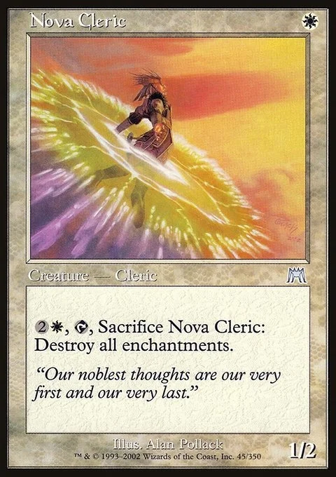 {2}{W}, {T}, Sacrifice Nova Cleric: Destroy all enchantments.