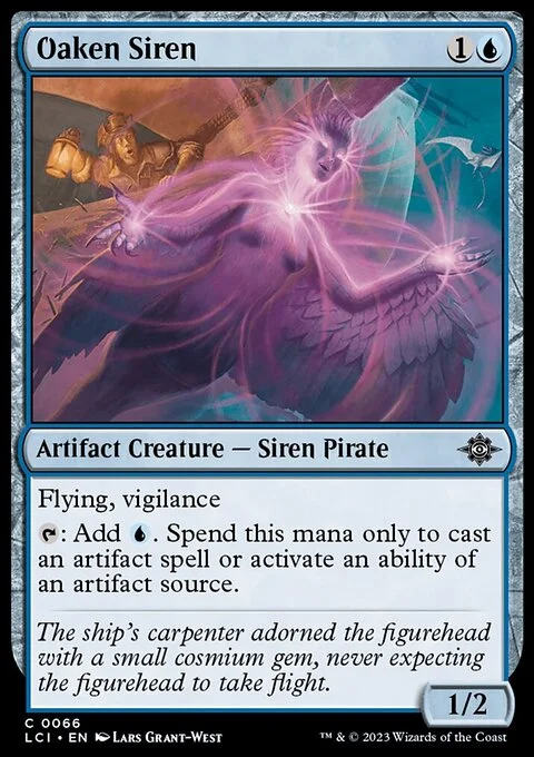 Flying, vigilance {T}: Add {U}. Spend this mana only to cast an artifact spell or activate an ability of an artifact source.