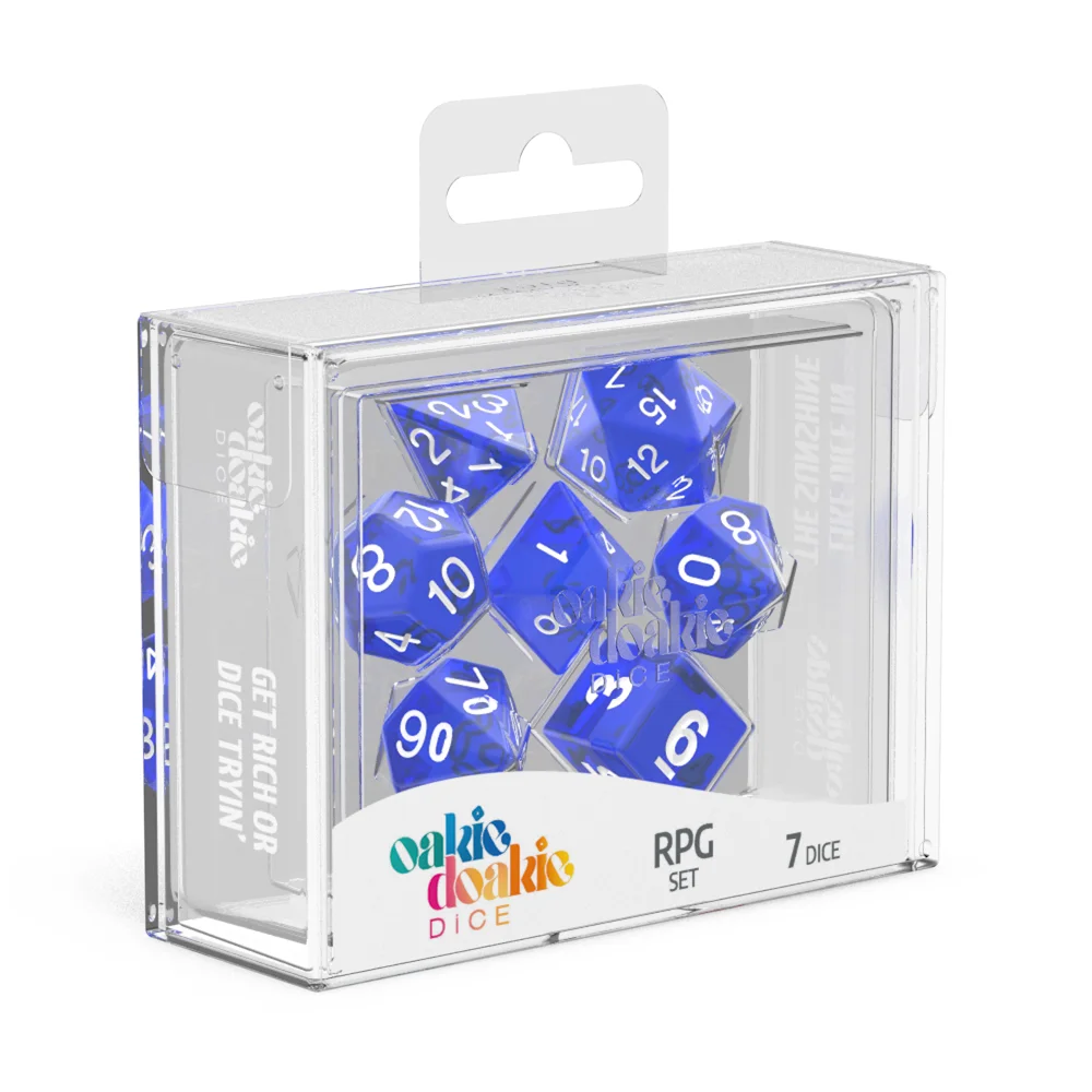 Oakie Doakie Dice RPG 7 Dice Set Translucent Blue