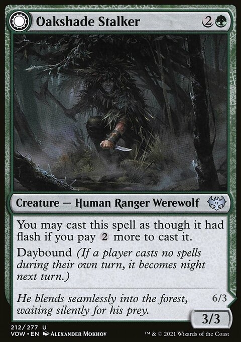 You may cast Oakshade Stalker as though it had flash if you pay {2} more to cast it.