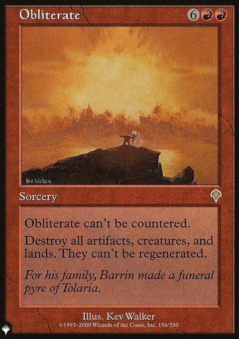 This spell can't be countered. Destroy all artifacts, creatures, and lands. They can't be regenerated.