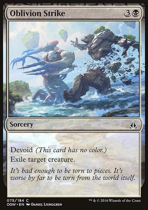 Devoid (This card has no color.) Exile target creature.