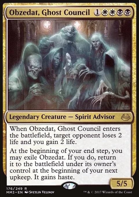 When Obzedat, Ghost Council enters the battlefield, target opponent loses 2 life and you gain 2 life.