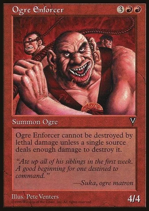 Ogre Enforcer cannot be destroyed by lethal damage unless a single source deals enough damage to destroy it.