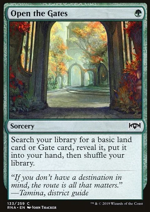 Search your library for a basic land card or Gate card, reveal it, put it into your hand, then shuffle.