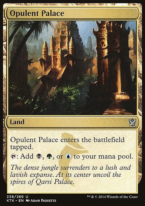 This land enters tapped. {T}: Add {B}, {G}, or {U}.