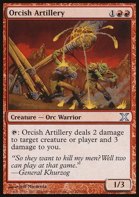 {T}: Orcish Artillery deals 2 damage to any target and 3 damage to you.