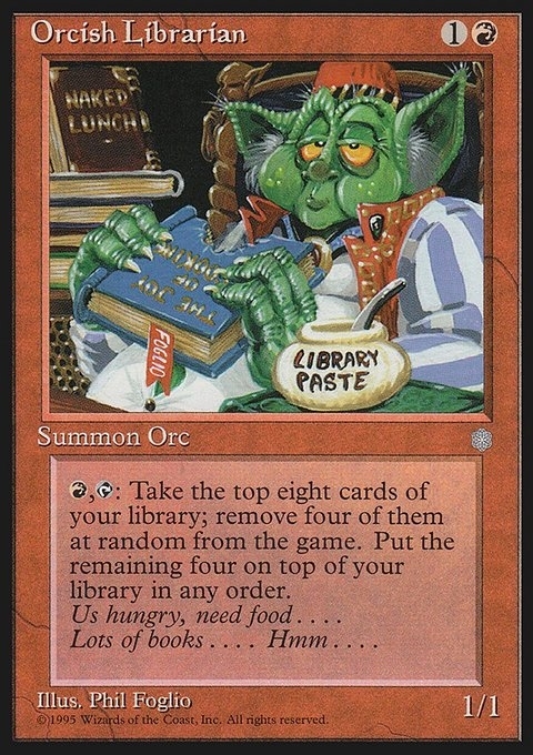 R, T: Take the top eight cards of your library; remove four of them at random from the game. Put the remaining four on top of your library in any order.