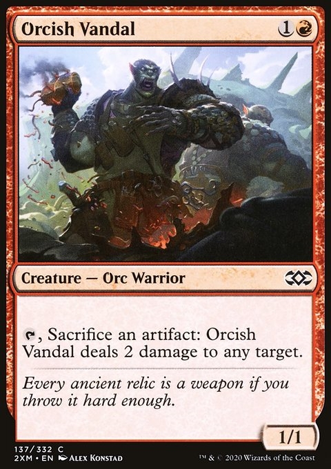 {T}, Sacrifice an artifact: Orcish Vandal deals 2 damage to any target.