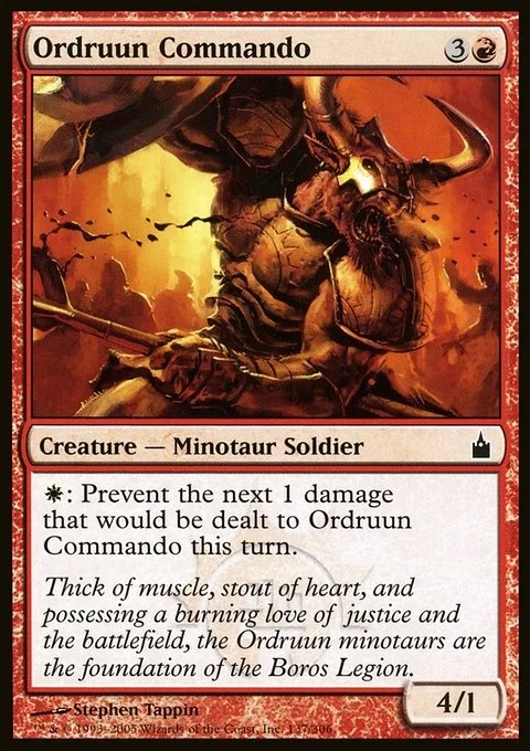 {W}: Prevent the next 1 damage that would be dealt to Ordruun Commando this turn.