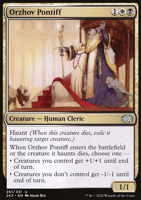 When Orzhov Pontiff enters the battlefield or the creature it haunts dies, choose one —