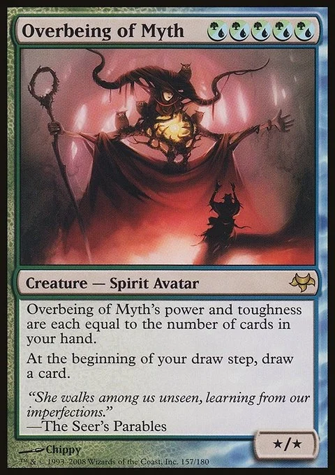 Overbeing of Myth's power and toughness are each equal to the number of cards in your hand. At the beginning of your draw step, draw an additional card.
