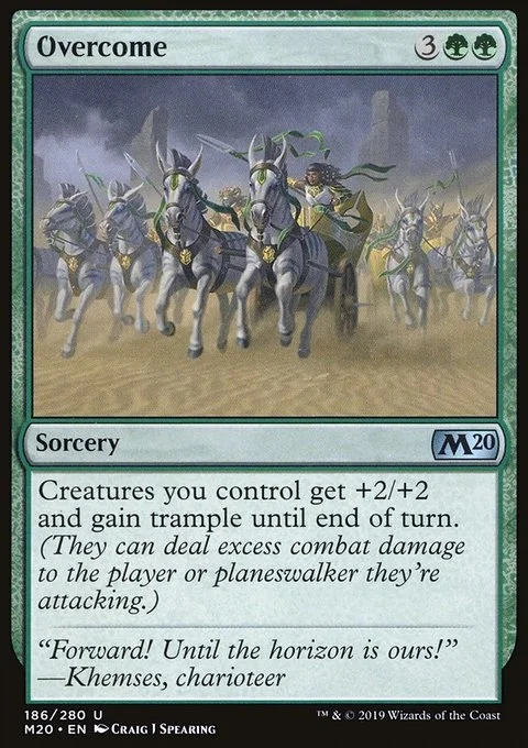 Creatures you control get +2/+2 and gain trample until end of turn. (They can deal excess combat damage to the player or planeswalker they're attacking.)