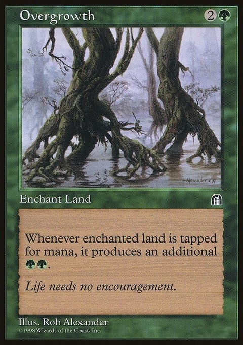 Enchant land Whenever enchanted land is tapped for mana, its controller adds an additional {G}{G}.