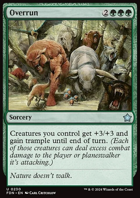 Creatures you control get +3/+3 and gain trample until end of turn. (Each of those creatures can deal excess combat damage to the player or planeswalker it's attacking.)