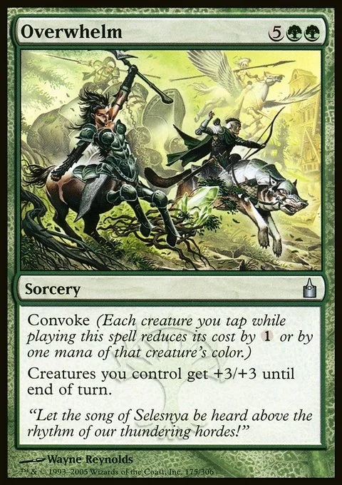 Convoke (Your creatures can help cast this spell. Each creature you tap while casting this spell pays for {1} or one mana of that creature's color.) Creatures you control get +3/+3 until end of turn.