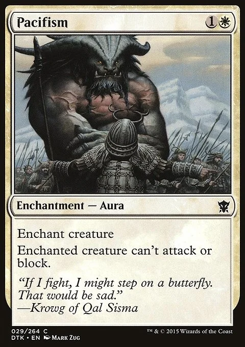 Enchant creature Enchanted creature can't attack or block.
