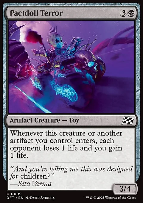 Whenever this creature or another artifact you control enters, each opponent loses 1 life and you gain 1 life.