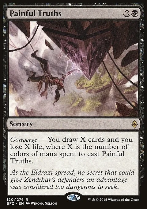 Converge — You draw X cards and you lose X life, where X is the number of colors of mana spent to cast Painful Truths.