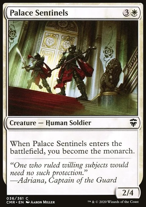 When Palace Sentinels enters the battlefield, you become the monarch.