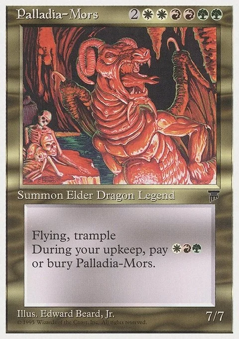 Flying, trampleDuring your upkeep, pay WRG or bury Palladia-Mors.