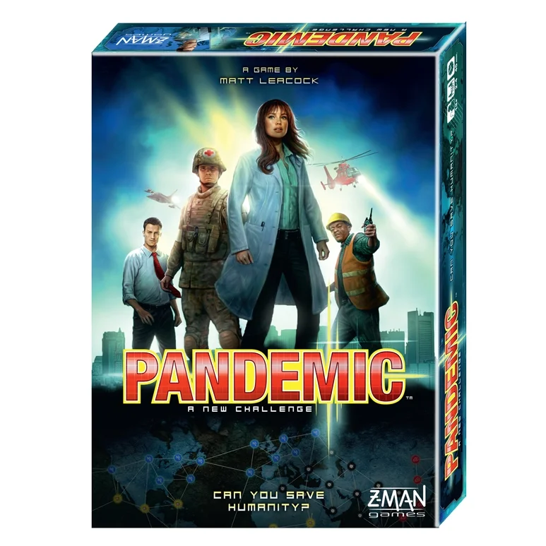As skilled members of a disease-fighting team, you must keep four deadly diseases at bay while discovering their cures. You and your teammates will travel across the globe, treating infections while finding resources for cures. You must work as a team to succeed. Pandemic is a cooperative game, all players win or lose together. The clock is ticking as outbreaks and epidemics fuel the spreading plagues. Can you find all four cures in time? The fate of humanity is in your hands!