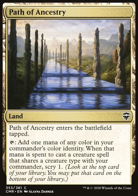 This land enters tapped. {T}: Add one mana of any color in your commander's color identity. When that mana is spent to cast a creature spell that shares a creature type with your commander, scry 1. (Look at the top card of your library. You may put that card on the bottom.)