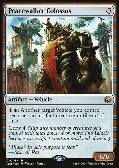 {1}{W}: Another target Vehicle you control becomes an artifact creature until end of turn. Crew 4 (Tap any number of creatures you control with total power 4 or more: This Vehicle becomes an artifact creature until end of turn.)
