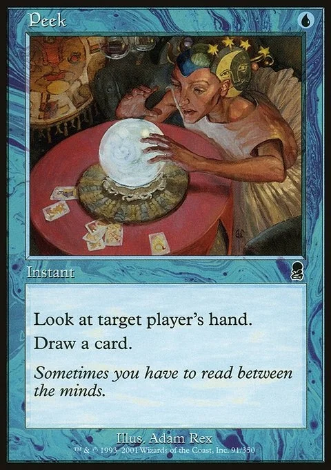 Look at target player's hand. Draw a card.