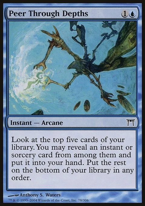 Look at the top five cards of your library. You may reveal an instant or sorcery card from among them and put it into your hand. Put the rest on the bottom of your library in any order.