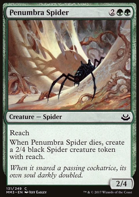 Reach When this creature dies, create a 2/4 black Spider creature token with reach.