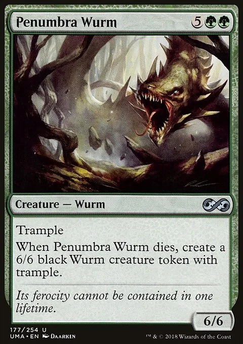 Trample When Penumbra Wurm dies, create a 6/6 black Wurm creature token with trample.